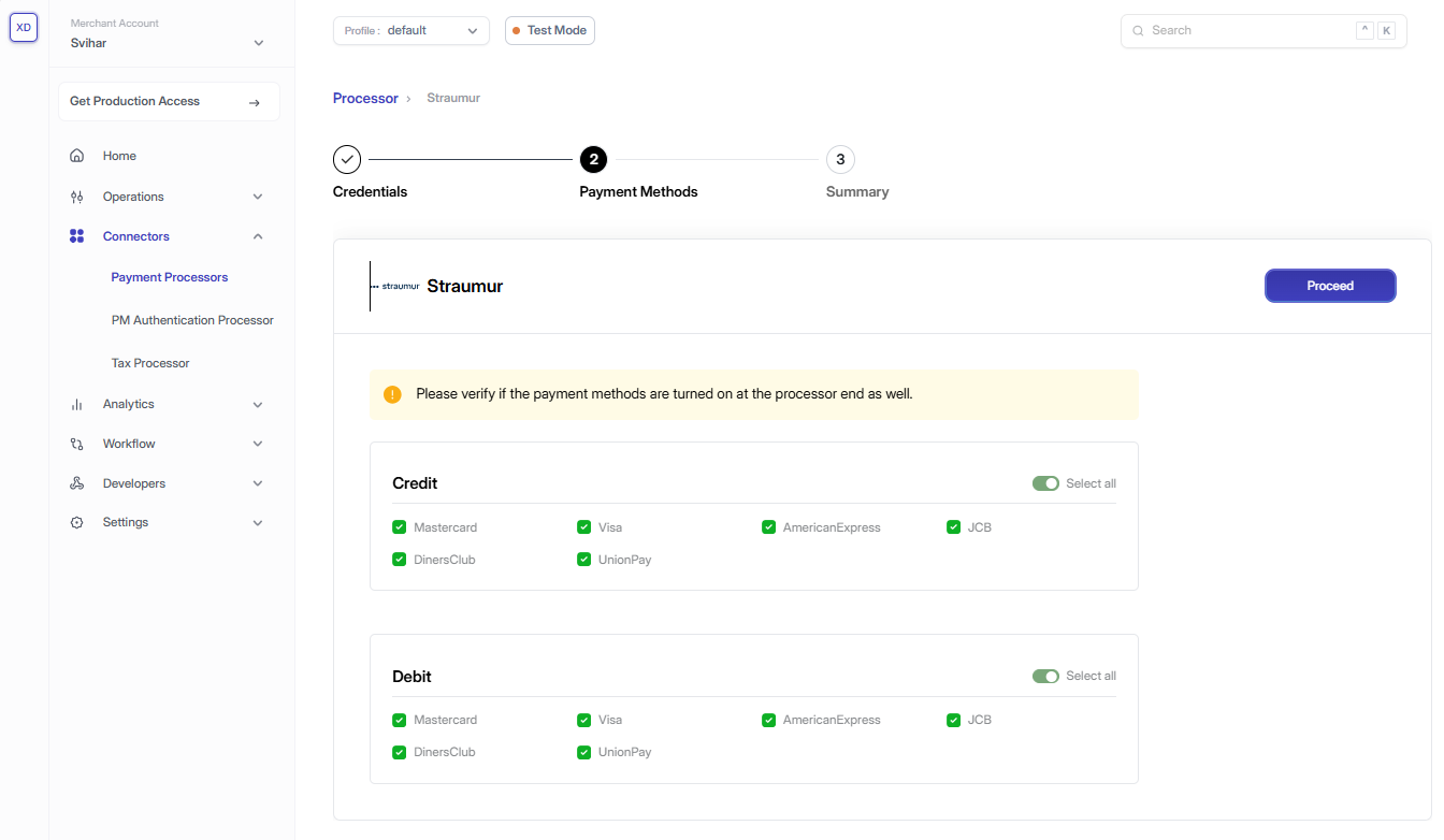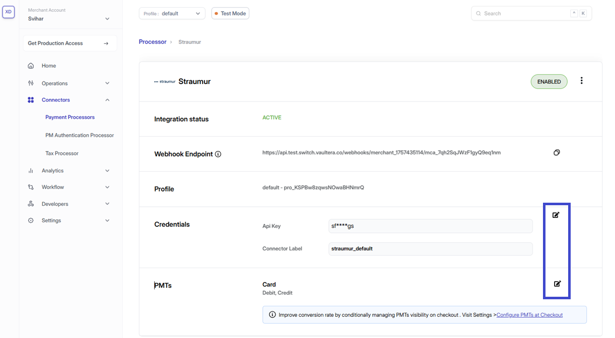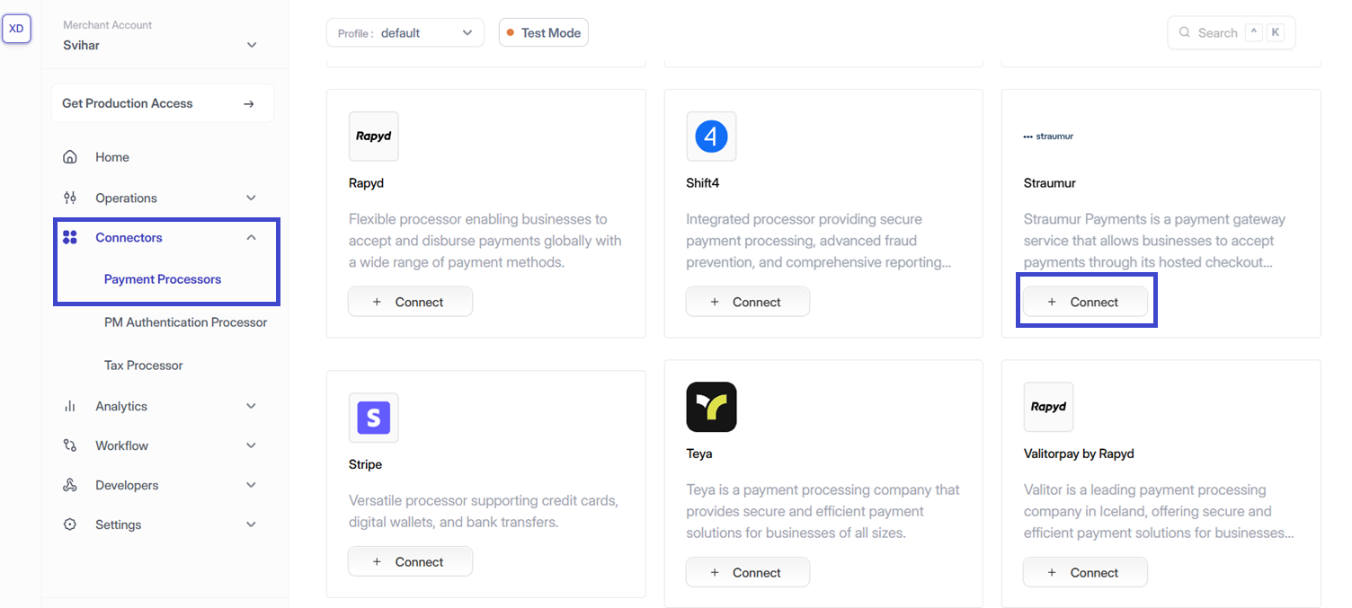 Connectors are the bridge between Vaultera Switch and various payment service providers. By activating a connector, you enable your application to process payments through that specific payment gateway.Steps to Activate a Connector