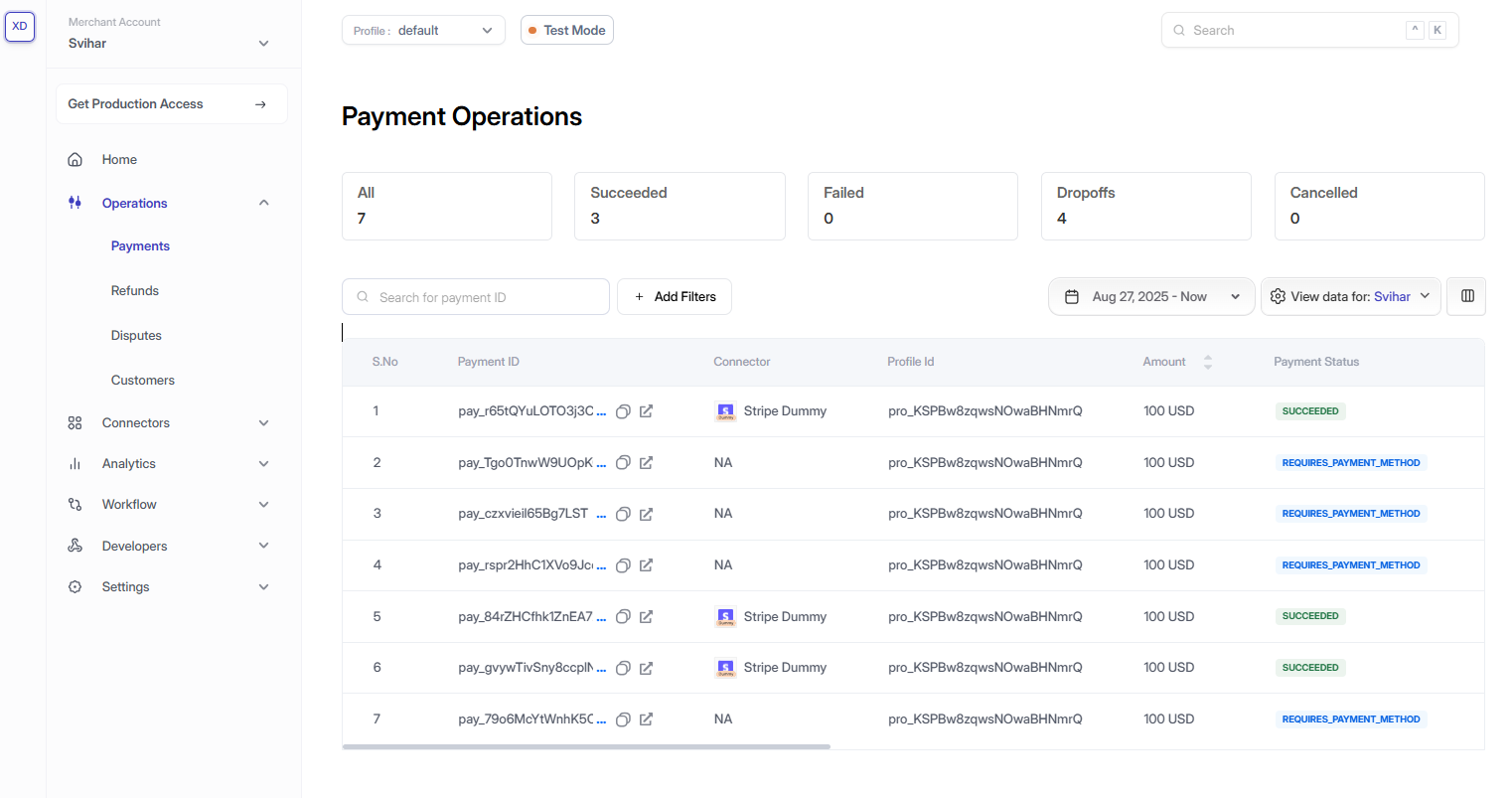 Note: Dummy connectors support payments and refunds only.- Payments expire after 2 days.